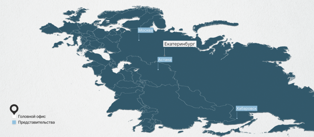 Офис разработки “Гуру Консалтинг” находится в Екатеринбурге, торговые представительства в Москве, Хабаровске и Астане